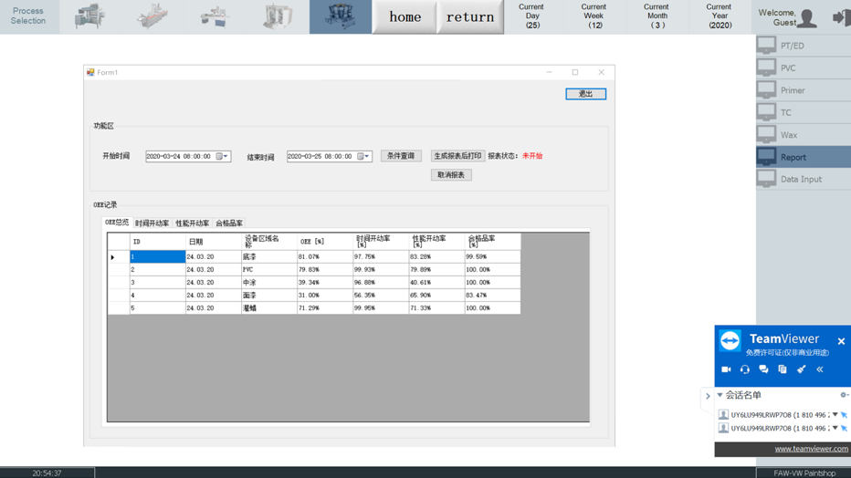 系统功能 配置底漆参数:底漆为涂装工艺中一个子工艺,对应的计算需要手工设置对应参数。 配置PVC参数:PVC为涂装工艺中一个子工艺,对应的计算需要手工设置对应参数。 配置中涂参数:中涂为涂装工艺中一个子工艺,对应的计算需要手工设置对应参数。 配置灌蜡参数:灌蜡为涂装工艺中一个子工艺,对应的计算需要手工设置对应参数。 配置灌蜡参数:灌蜡为涂装工艺中一个子工艺,对应的计算需要手工设置对应参数。 用订单号查询配方:查询某个编号的配方是否存在。 实时采集生产过程数据:对需要参与运算的多个生产过程进行实时采集,生产数据来自MES系统。 计算:利用配置参数和生产过程数据计算每天的值。 数据查询:查询指定日期内数据 数据报表:导出指定日期内报表。 |